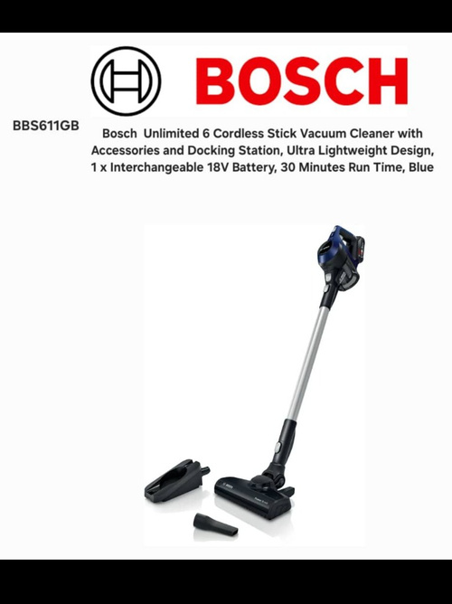 قدرت مکش بالا، دیزاین جذاب و استفاده به دو صورت دستی و ایستاده از بارزه های مثبت جارو شارژی بوش مدل BOSCH BBS611GB ساخت کشور آلمان هستند.